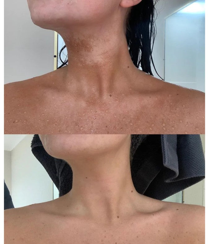 By removing dead skin cells and excess oil, the mitt helps prevent clogged pores, a major cause of acne breakouts.