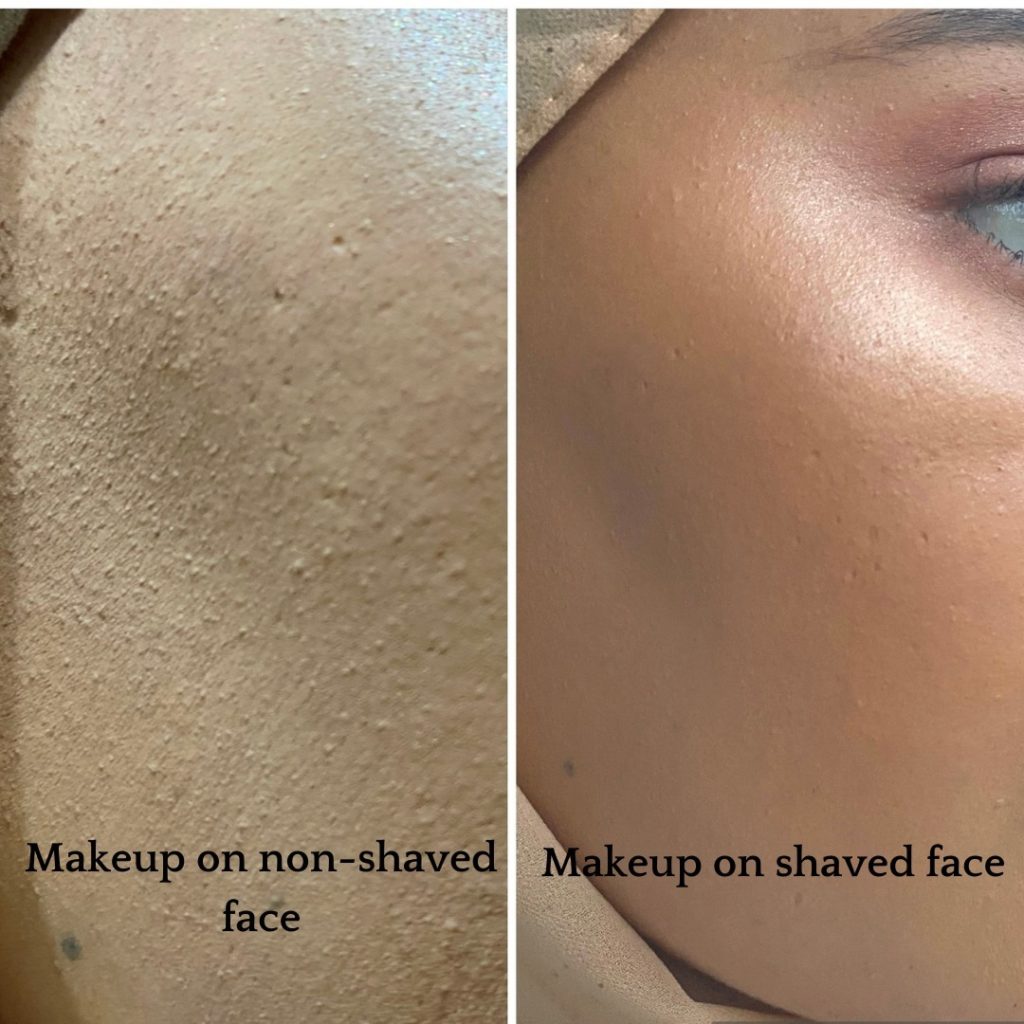 A pelyhek megfogják az alapozót, és megakadályozzák, hogy a smink egyenletesen kötődjön, a bőr pedig süteménynek tűnik. Az arcszőrzet borotválkozása során eltávolítja ezt az akadályt, és a bőr hibátlan sminkalapmá válik.